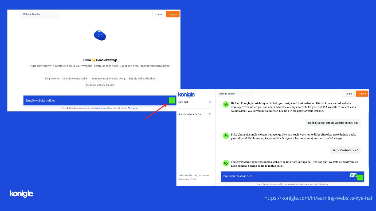 Step 1: वेबसाइट बनाने के लिए, Konigle वेबसाइट पर जाएं।